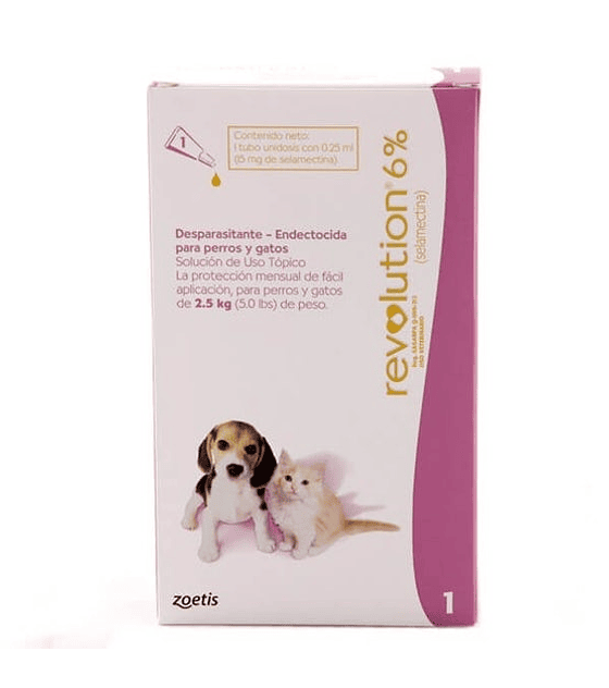 Indicación: perros y gatos mayores de 6 semanas de edad y menores de 2,5 Kg de peso